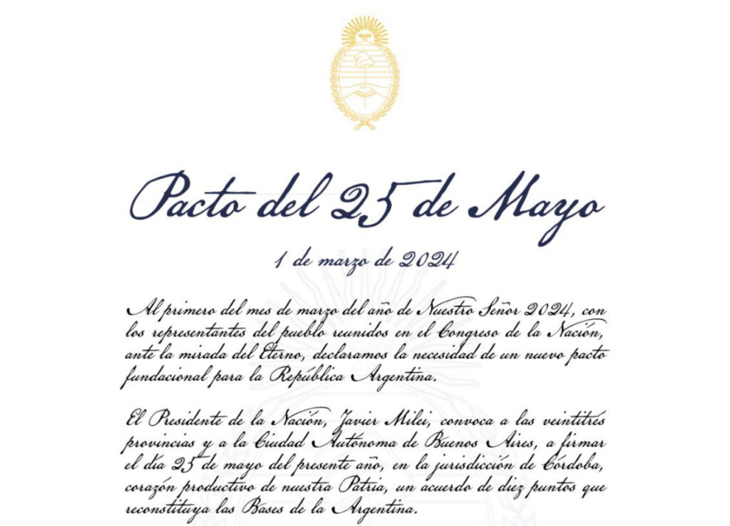 Lleva el nombre de “Pacto de Mayo” y tiene como objetivo acordar políticas comunes.