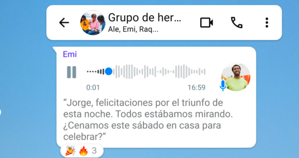 – Para transcribir un mensaje de voz, mantén presionado el mensaje y toca “transcribir”.